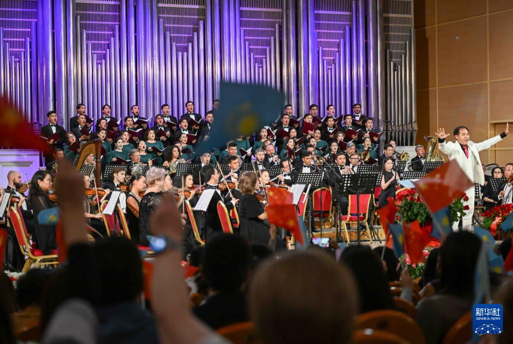 紀念中國人民抗日戰爭暨世界反法西斯戰爭勝利80周年、紀念冼星海誕辰120周年音樂會3日晚在哈薩克斯坦阿拉木圖的國立江布爾音樂廳舉行。阿市政府、外交領事機構、老兵協會、當地華僑華人、中資機構、留學生等各界人士近600人出席。哈國立拜卡達莫夫合唱團、阿布德拉舍夫國立模范交響樂隊共同演繹《黃河大合唱》《阿曼蓋爾德》等作品。觀眾們自發揮舞中哈兩國國旗,齊聲高唱歌曲,現場氣氛澎湃激昂。