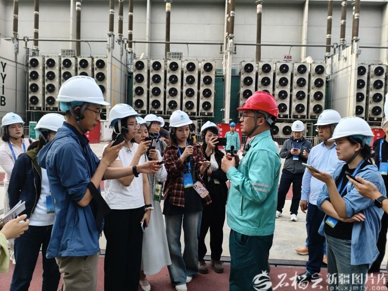 9月9日,"砥礪奮進(jìn)七十載 天山南北譜華章"大型集中采訪活動采訪團(tuán)對昌吉—古泉±1100千伏特高壓直流輸電工程工作人員進(jìn)行采訪。石榴云/新疆日報記者 冉虎攝
