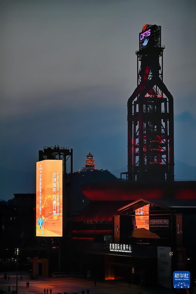 2025年中國國際服務貿易交易會于9月10日至14日在北京首鋼園區舉辦。夜幕下,首鋼園區內工業遺存在現代燈光輝映下,展現出別樣之美。