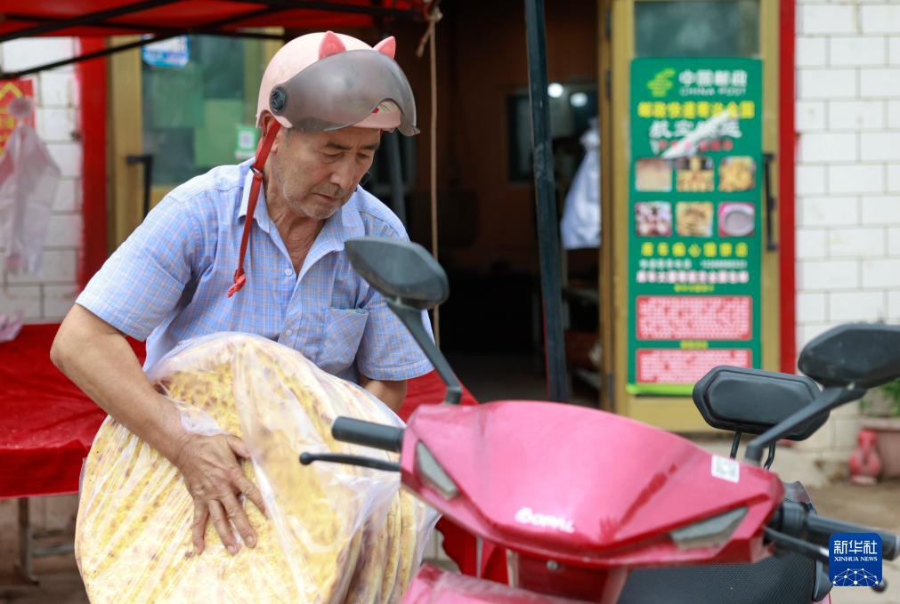 7月21日,在新疆庫車市,熱西提將馕打包后準備給顧客送貨。