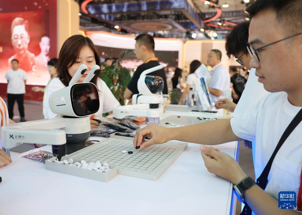 9月11日,一款下棋機器人在文旅服務專題展區與參觀者對弈。