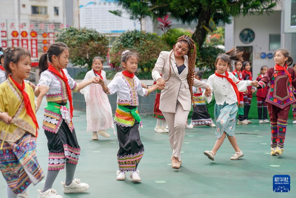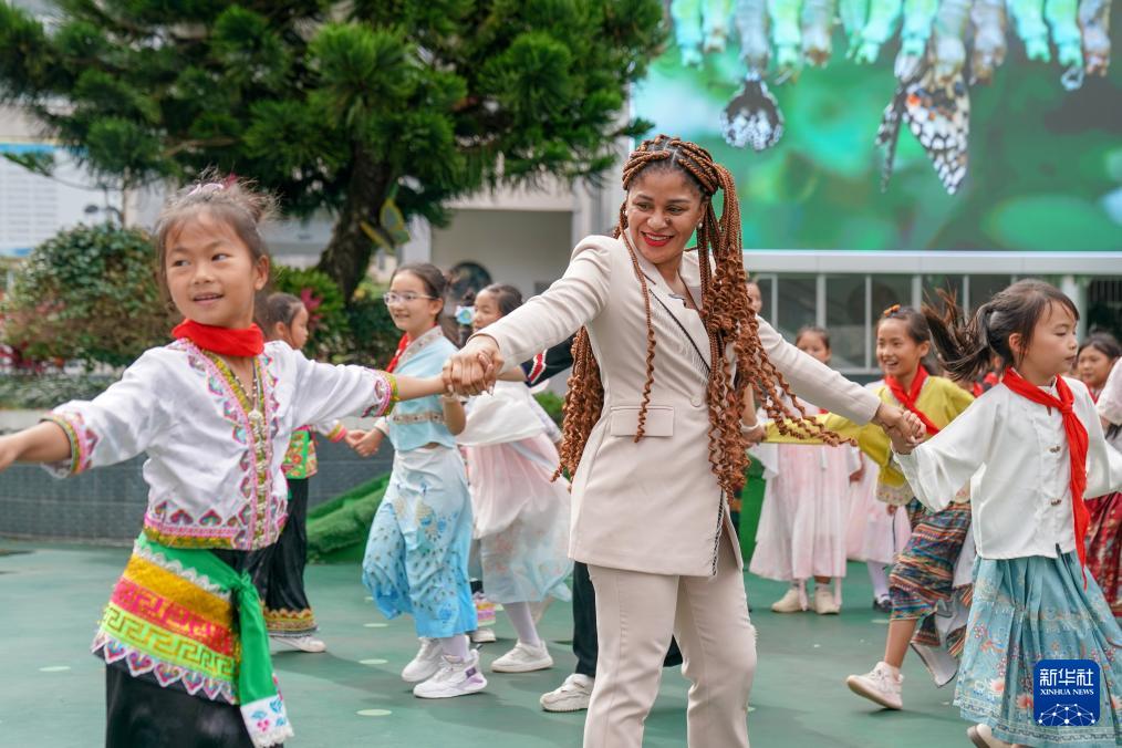 9月9日,米拉格羅薩·米查在中國-赤道幾內亞友誼小學同孩子們一起舞蹈。
