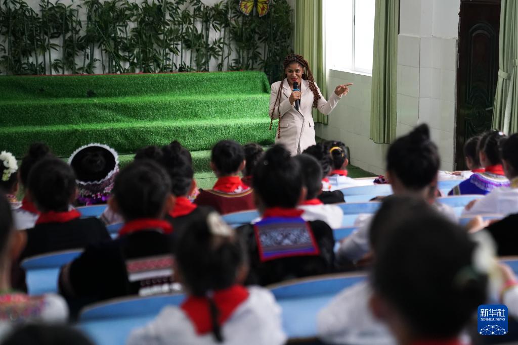 9月9日,米拉格羅薩·米查在中國-赤道幾內亞友誼小學同孩子們交流。
