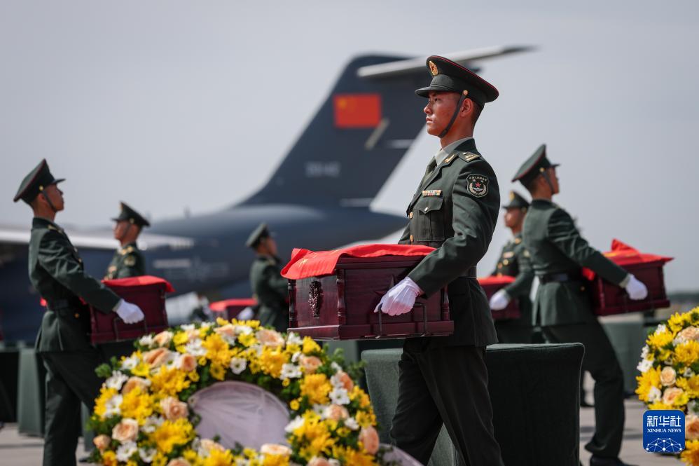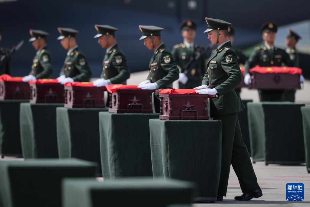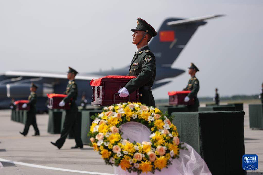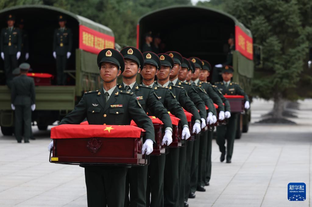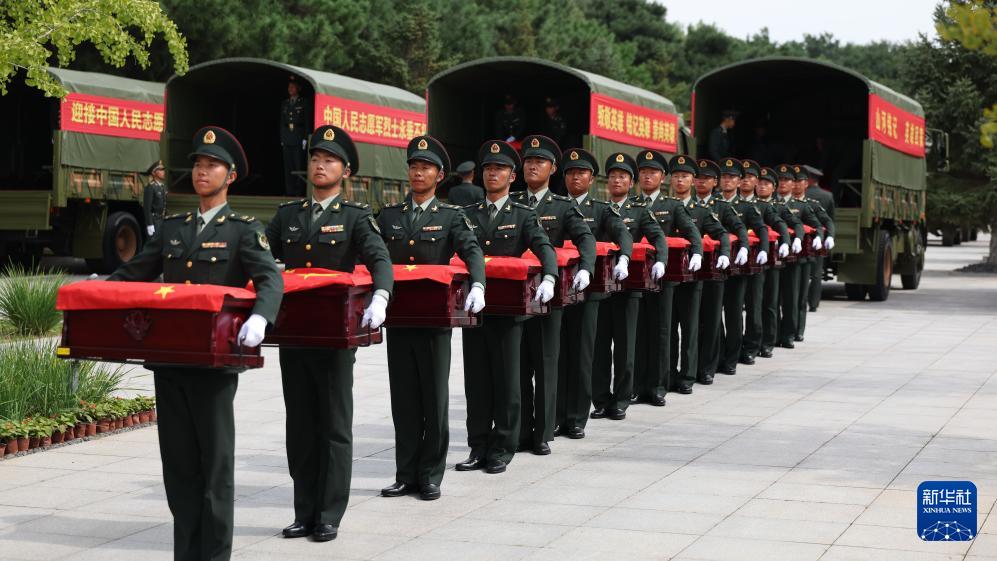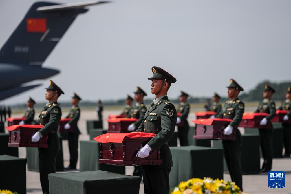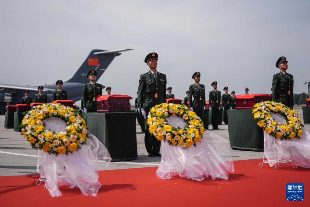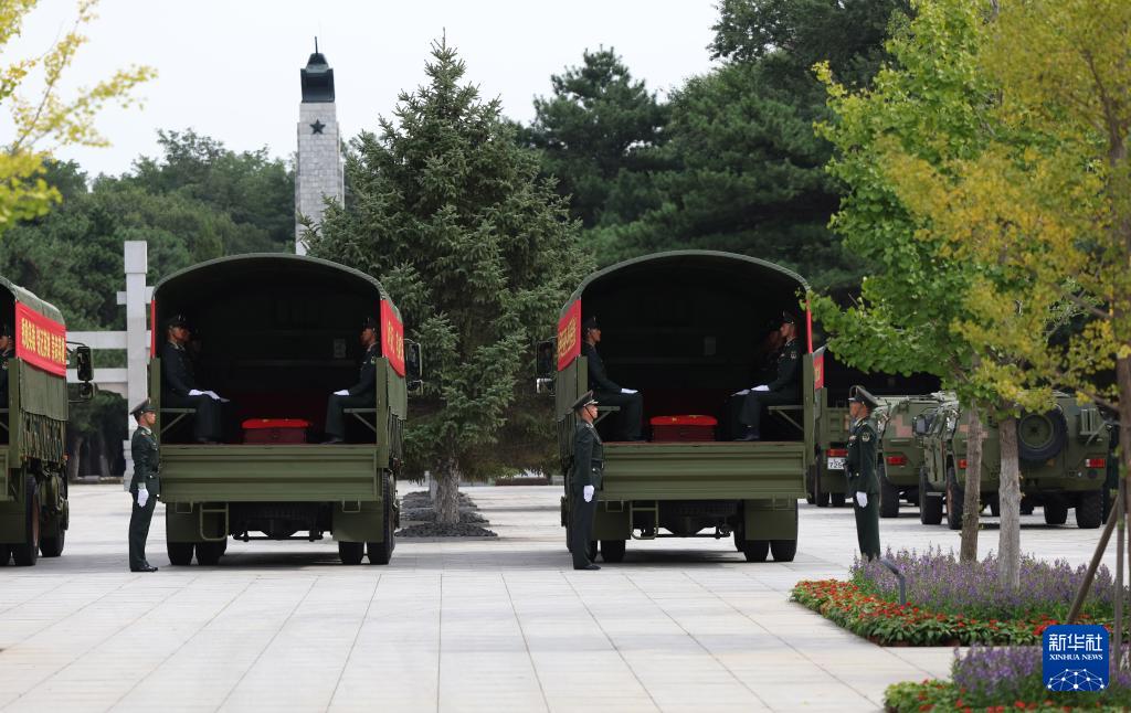 9月12日,第十二批在韓中國人民志愿軍烈士遺骸回國。這是志愿軍烈士遺骸抵達沈陽抗美援朝烈士陵園。