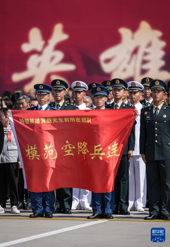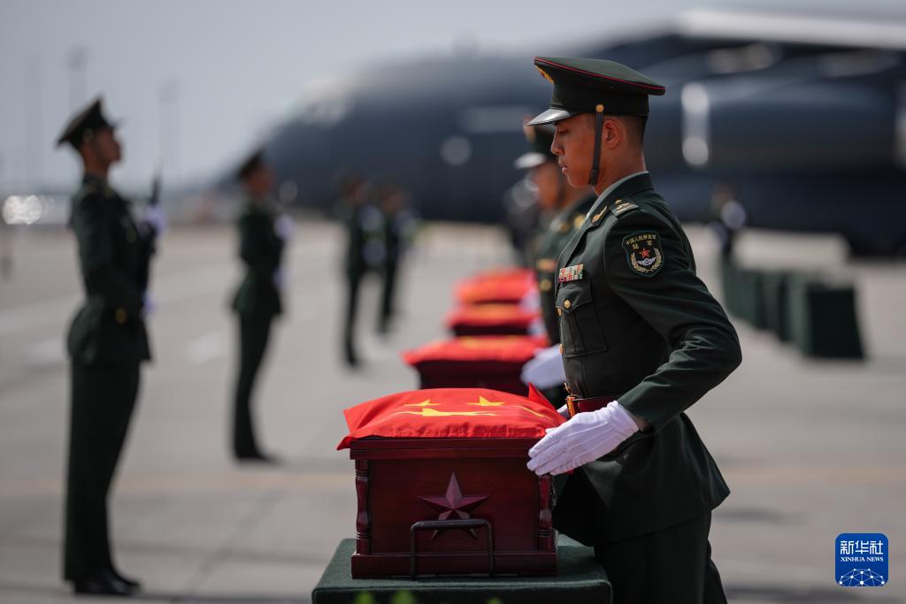 9月12日,第十二批在韓中國人民志愿軍烈士遺骸回國。這是空軍空降兵某部“黃繼光英雄連”官兵在沈陽桃仙國際機場舉行的迎回儀式上。
