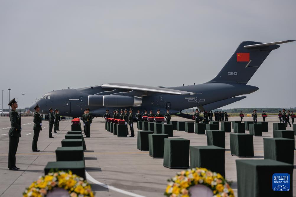 9月12日,第十二批在韓中國人民志愿軍烈士遺骸回國。這是在沈陽桃仙國際機場,接運烈士遺骸回國的運-20專機即將降落。