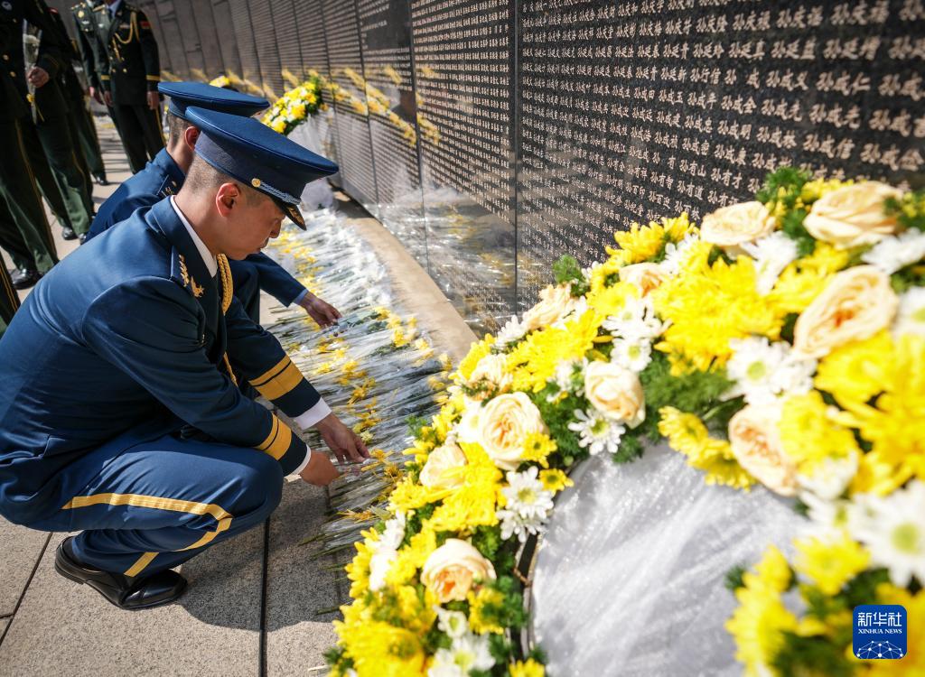 9月13日,空軍空降兵某部“黃繼光英雄連”官兵向烈士英名墻獻花。