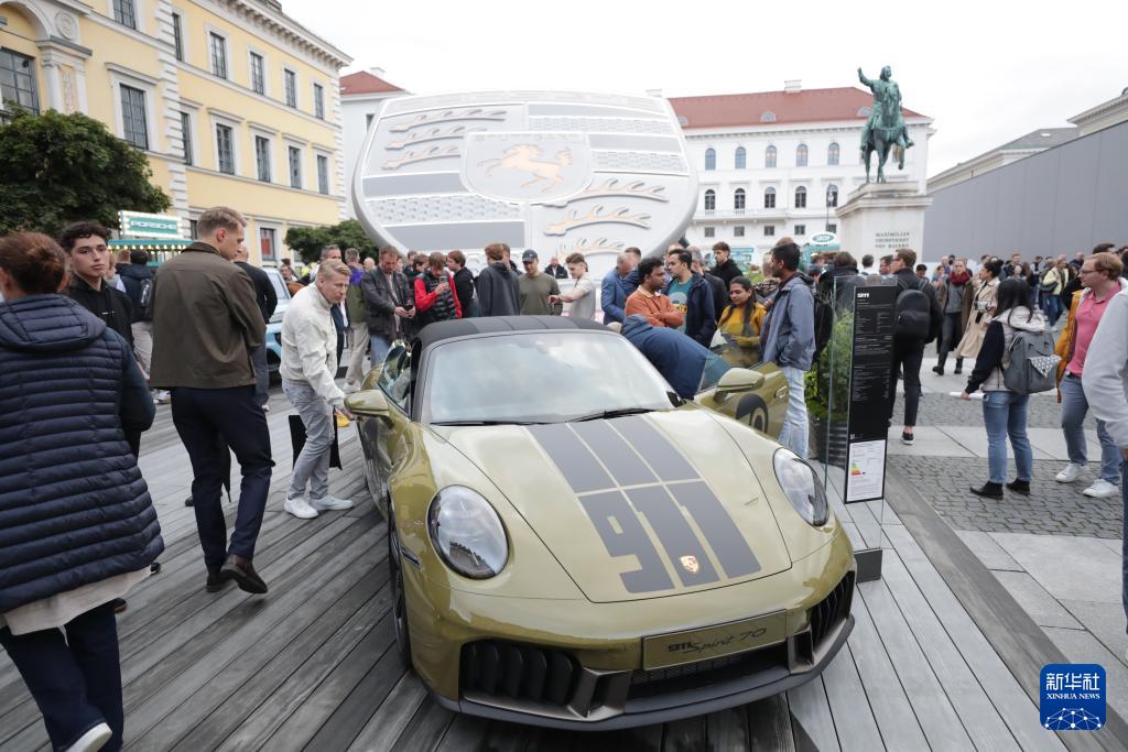 9月9日,在德國慕尼黑,人們?cè)谀侥岷趪H車展戶外展區(qū)保時(shí)捷展區(qū)參觀。
