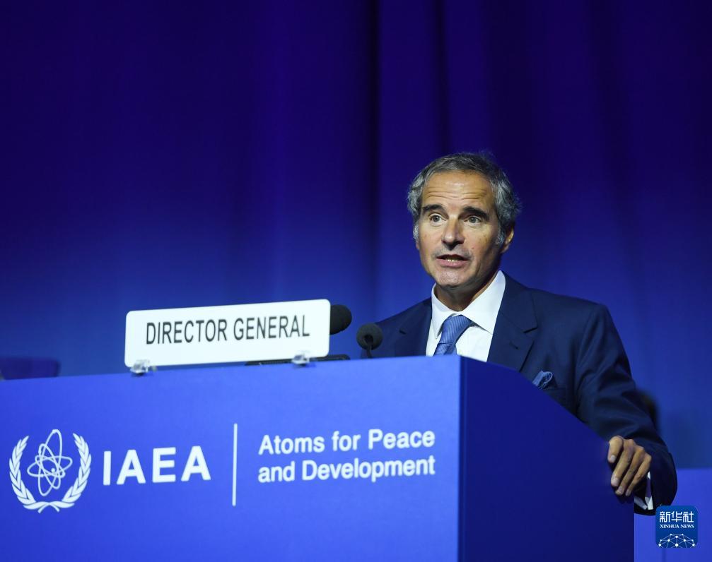 9月15日,在奧地利維也納,國際原子能機構總干事格羅西在國際原子能機構第69屆大會上致辭。新華社記者 賀燦鈴 攝