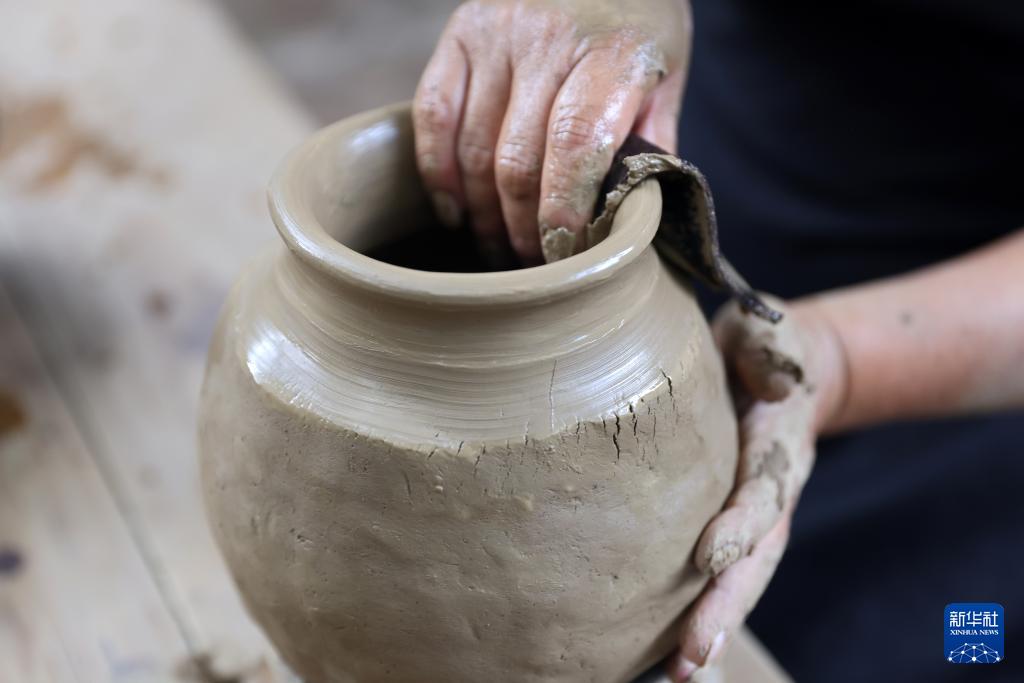 9月14日,在墨西哥瓦哈卡州的圣巴托洛科約特佩克市,一名黑陶手工藝者給陶土塑形。