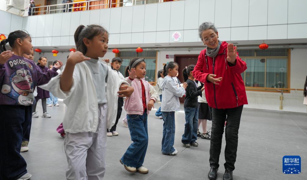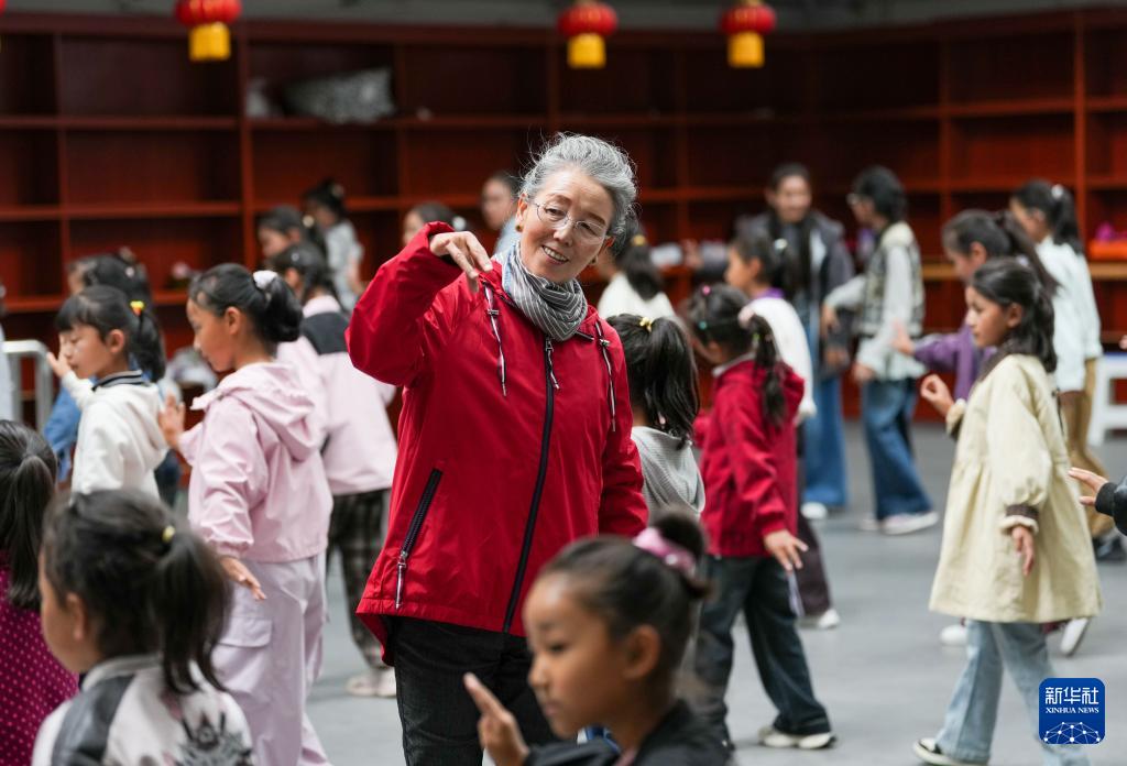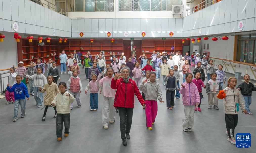 9月14日,巴桑老師在西藏自治區群藝館帶領孩子們學習藏戲表演。
