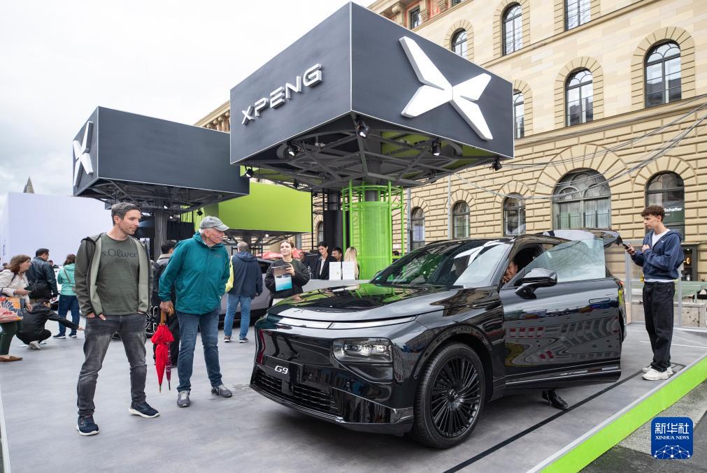 9月9日,人們?cè)诘聡?guó)慕尼黑國(guó)際車(chē)展戶(hù)外展區(qū)的小鵬汽車(chē)展臺(tái)參觀。
