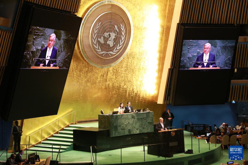 9月9日,聯合國秘書長古特雷斯在第80屆聯大第一次全會上講話。