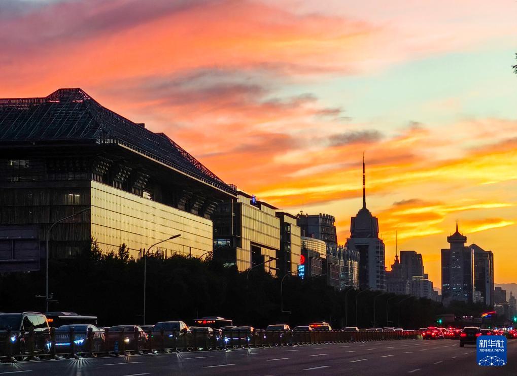 這是9月17日在北京長安街拍攝的晚霞(手機照片)。