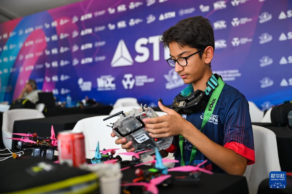 9月17日,一名參賽選手在土耳其伊斯坦布爾的科技展上調試無人機遙控器。