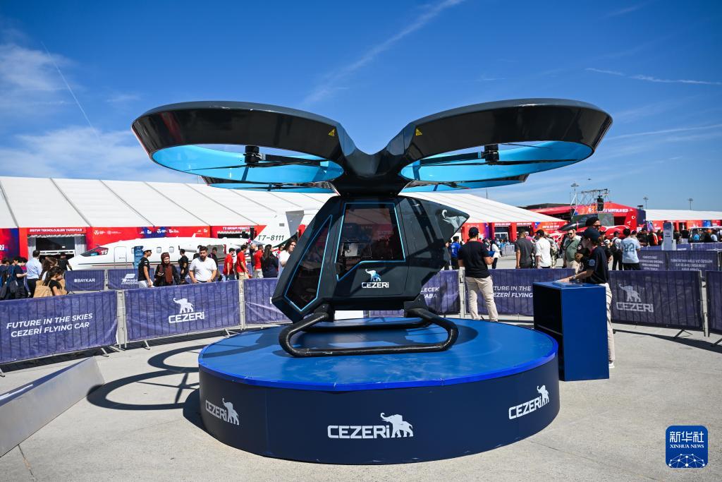 這是9月17日在土耳其伊斯坦布爾的科技展上拍攝的一輛飛行汽車。