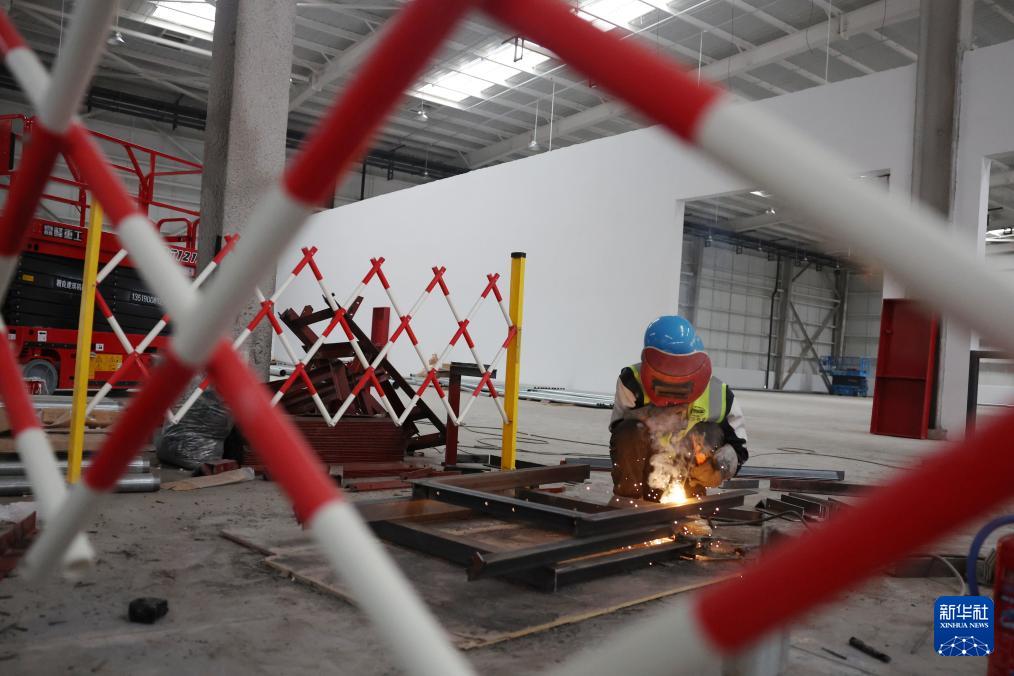 9月18日,中鐵二十局施工人員在甘肅臨夏綜合物流園項目建設現場進行電焊作業。