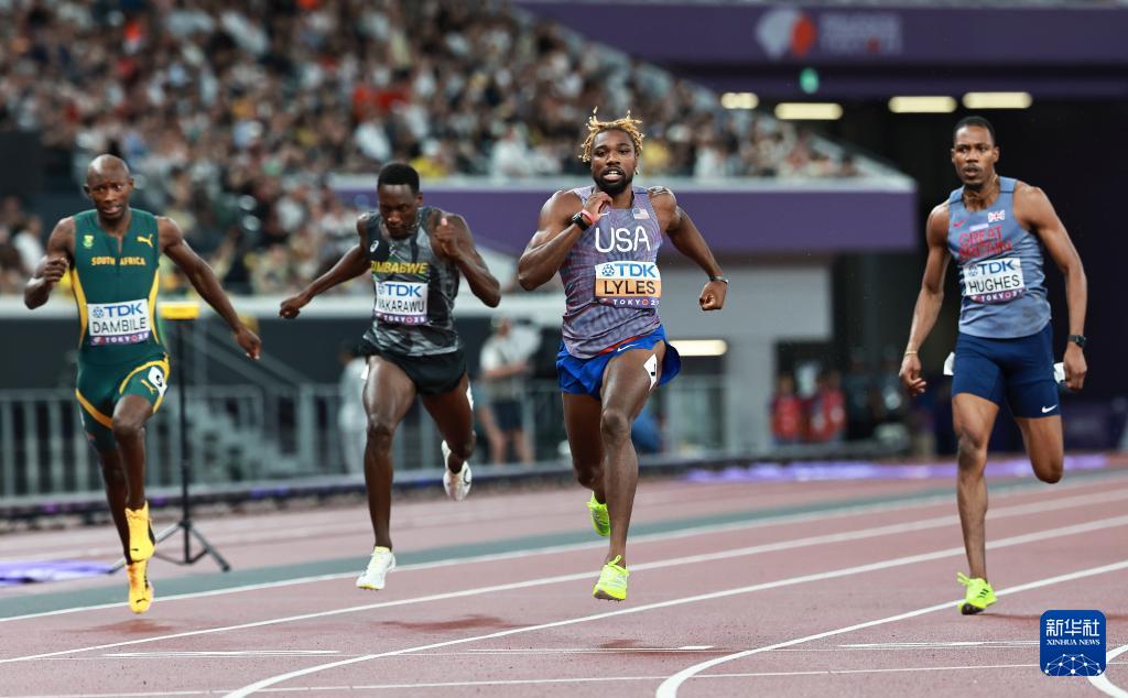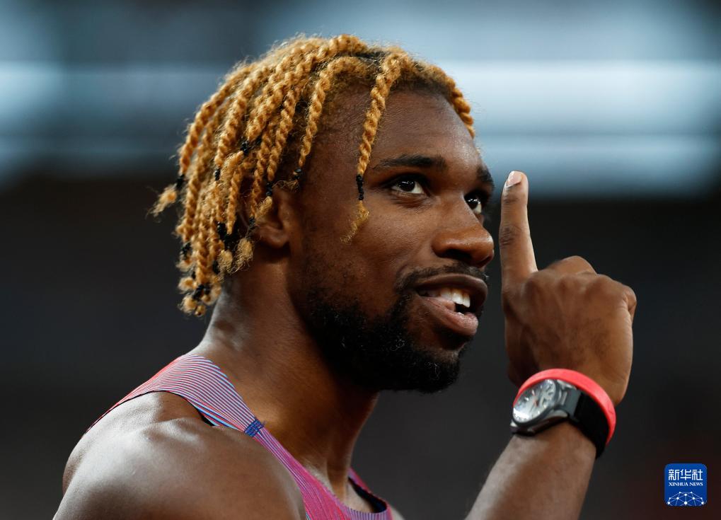 9月18日,美國選手萊爾斯沖過終點線后。最終,他以小組第一晉級決賽。