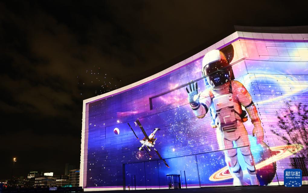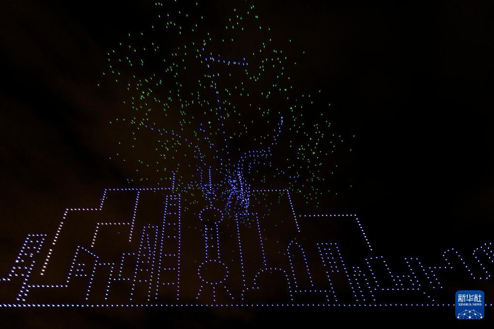 這是在徐匯濱江主會場拍攝的無人機燈光秀(9月19日攝)。