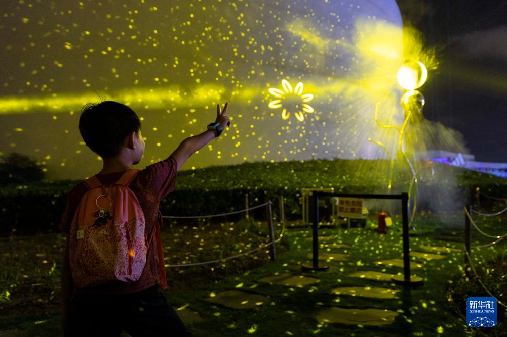 9月19日,一名小朋友在徐匯濱江主會場欣賞燈光秀。
