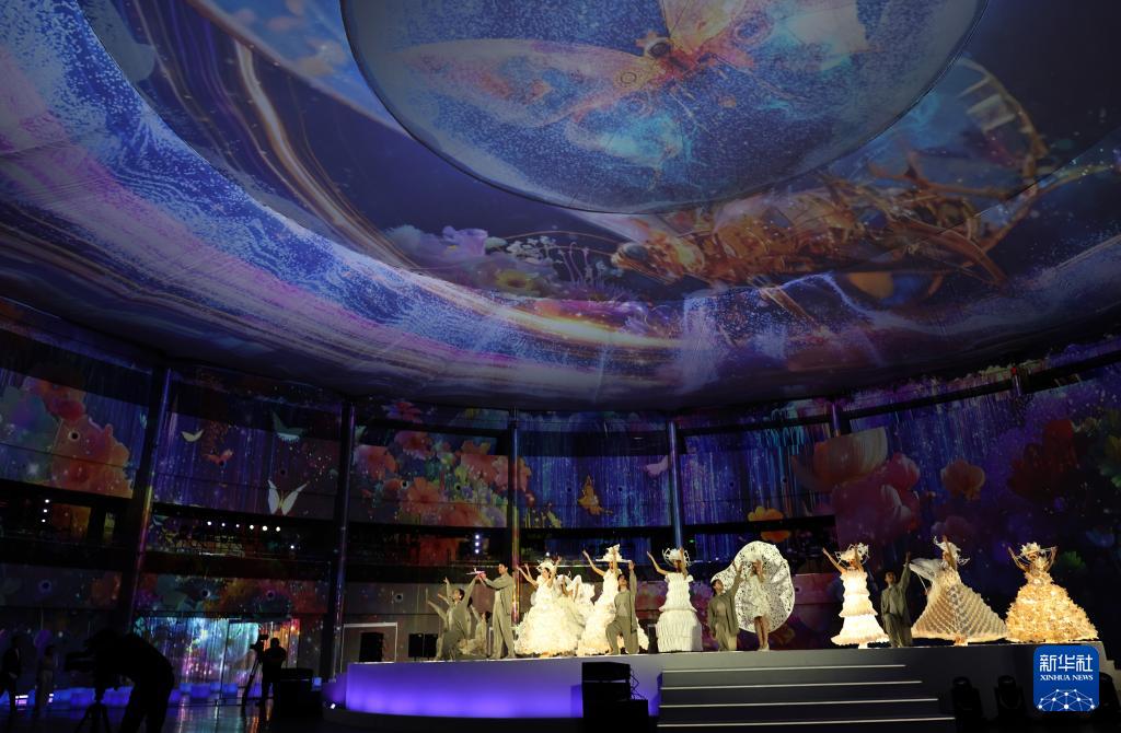 這是在開幕儀式上上演的穹頂燈光秀(9月19日攝)。