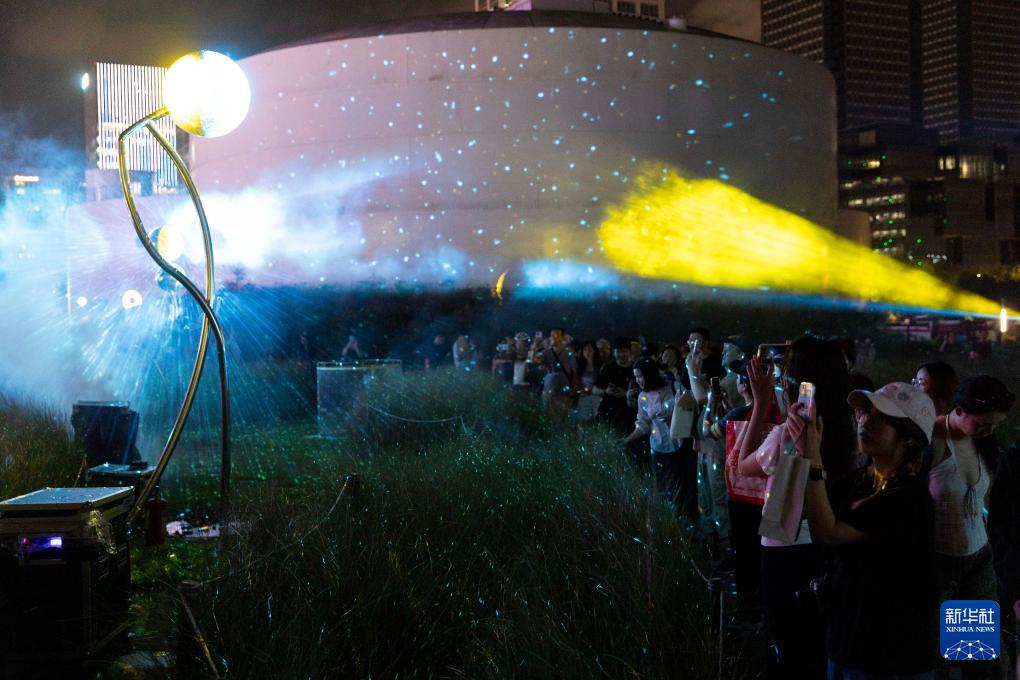 9月19日,人們在徐匯濱江主會場欣賞燈光秀。
