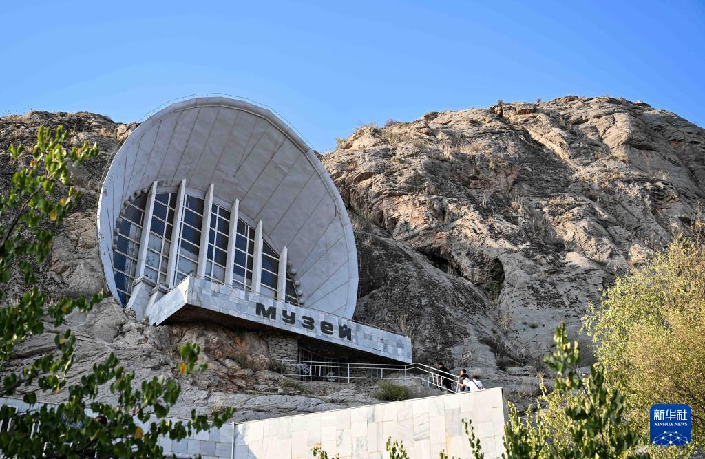 9月19日,在吉爾吉斯斯坦奧什,游客在蘇萊曼山博物館前游覽。
