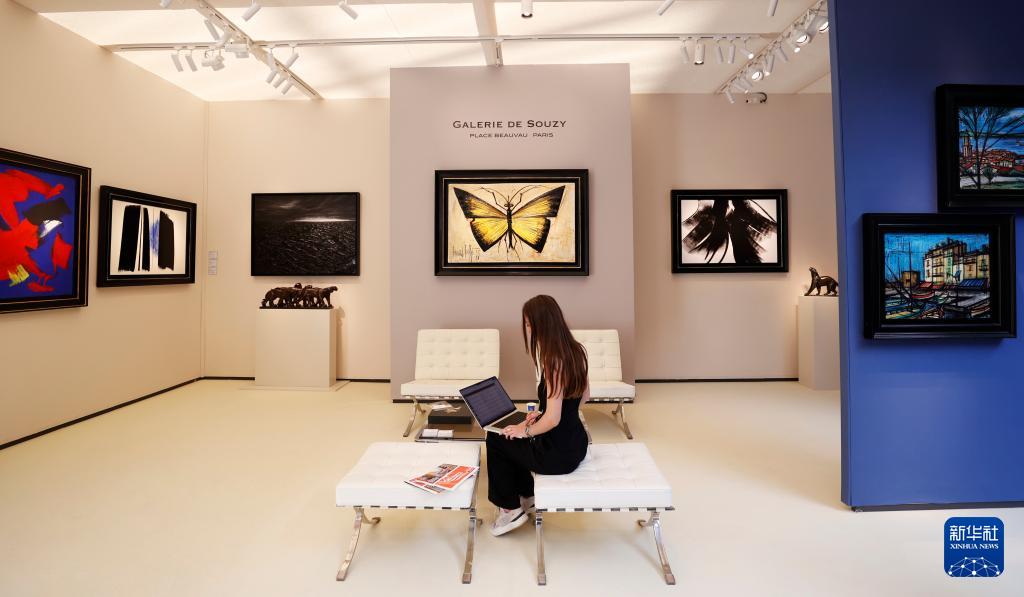 9月19日,在法國巴黎大皇宮,一名工作人員在第四屆巴黎FAB美術與古董藝博會(FAB Paris)媒體預展上。