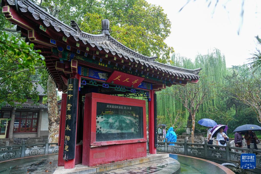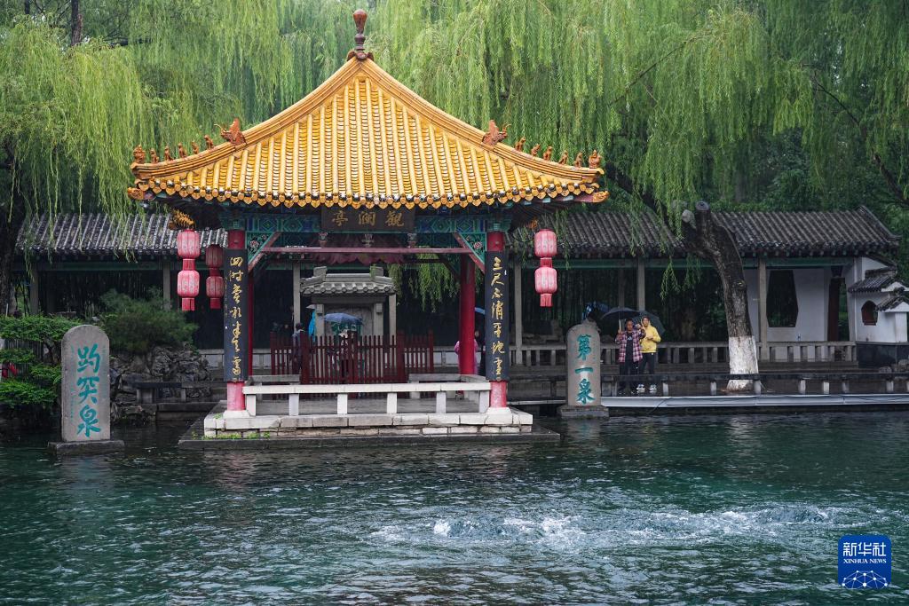 當日是秋分節氣,受連日降雨影響,山東省濟南市趵突泉泉水噴涌勢頭強勁,再現“趵突騰空”景象。
