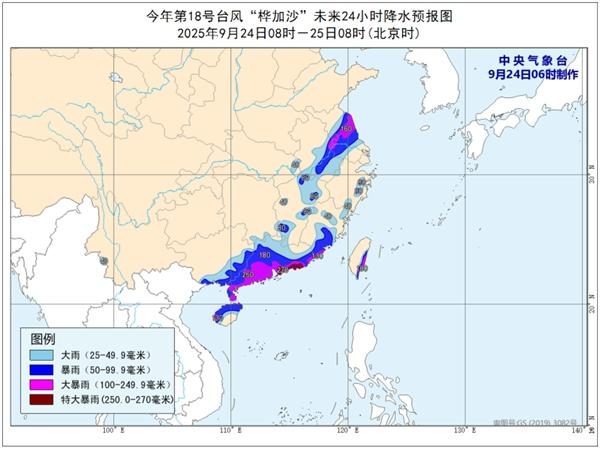 截至今天(9月24日)10時, “樺加沙”保持超強臺風級別已超72小時。預計今天(9月24日)白天,隨著冷空氣南下, “樺加沙”強度將有所減弱,預計在傍晚至夜間登陸廣東沿海時,強度將在臺風或強臺風級。雖然登陸前 “樺加沙”將減弱,但其影響期間疊加冷空氣和天文大潮,風雨影響仍不可小覷,24日至26日,廣東、廣西、海南、福建局地或遭特大暴雨侵襲,當地需持續做好防臺風措施。