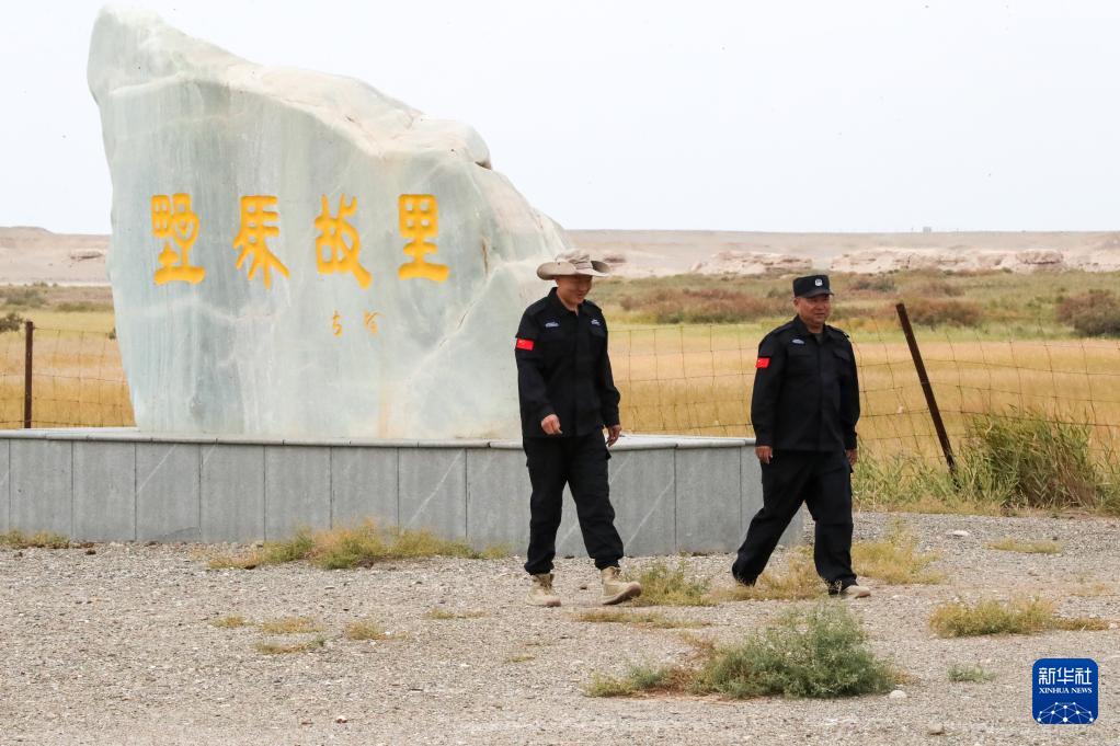 9月24日,甘肅敦煌西湖國家級自然保護區管護中心玉門關保護站站長吳興東(右)與工作人員巡視保護區內普氏野馬活動情況。