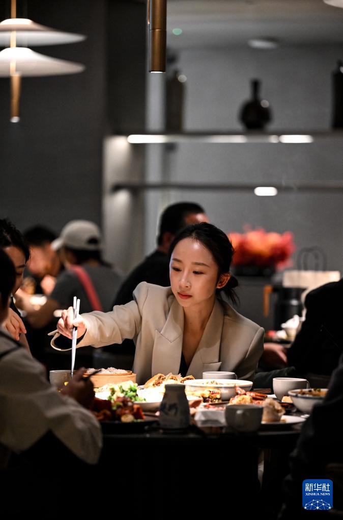 9月24日,顧客在寧夏吳忠市一家早茶店品嘗特色小吃和面點(diǎn)。