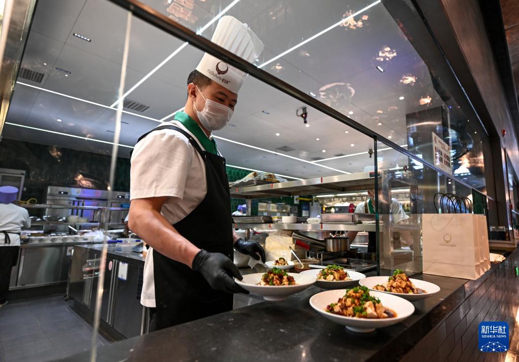 9月24日,寧夏吳忠市一家早茶店廚師將做好的小吃遞到窗口。