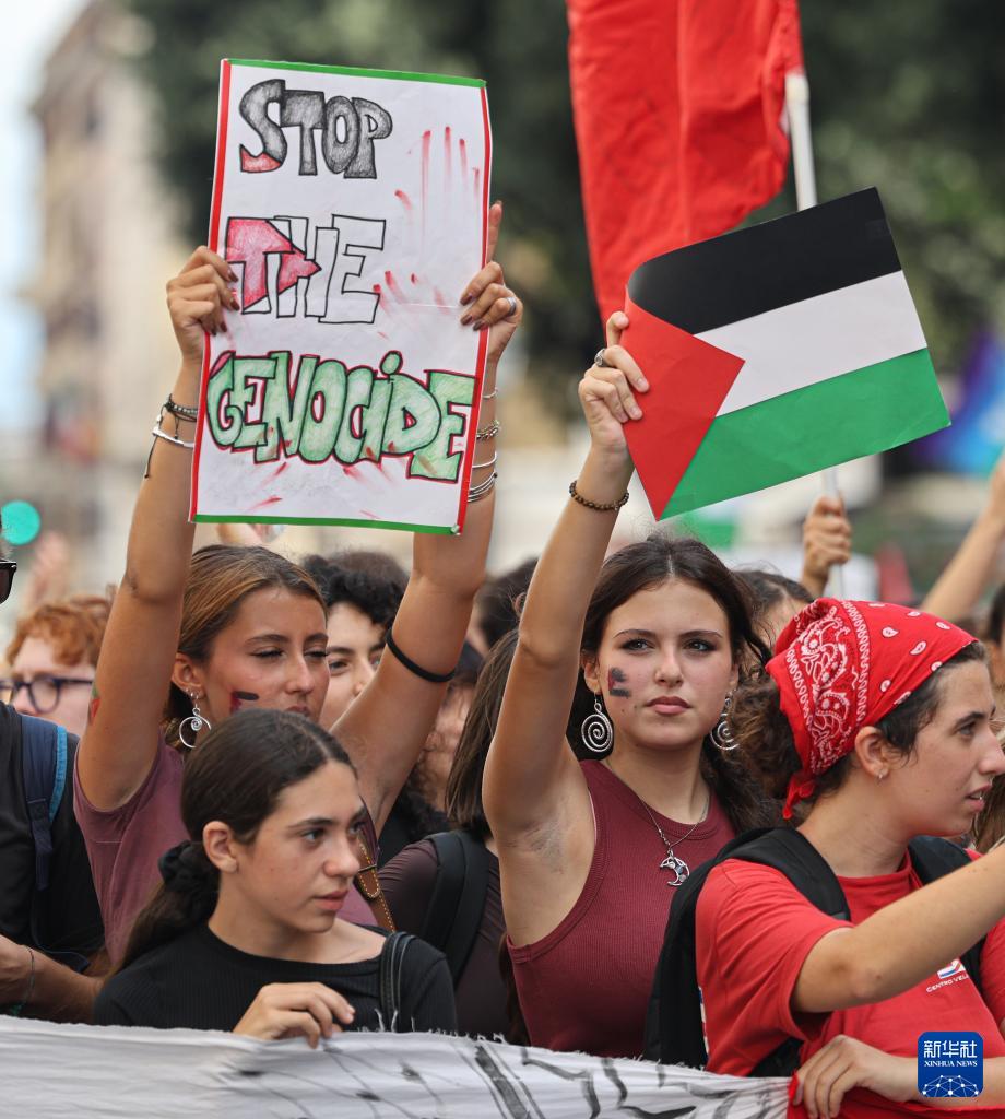 9月22日,人們在意大利羅馬參加聲援巴勒斯坦的示威游行。
