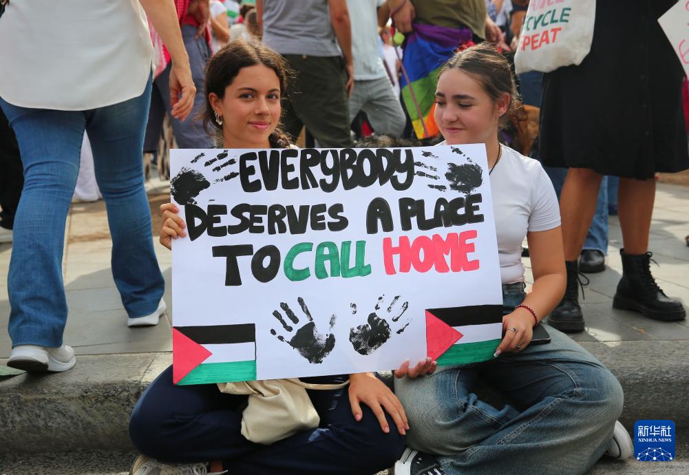 9月22日,人們在意大利羅馬參加聲援巴勒斯坦的示威游行。