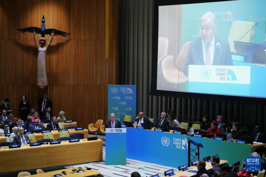 9月24日,在位于紐約的聯(lián)合國總部,聯(lián)合國秘書長古特雷斯在聯(lián)合國氣候變化峰會上致辭。新華社記者 吳曉凌 攝