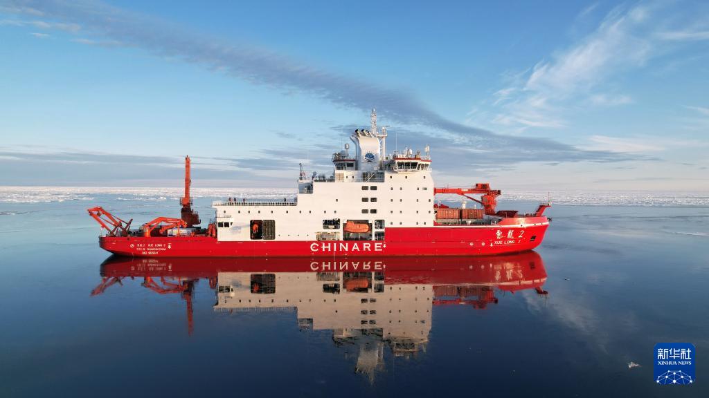 在北冰洋進行科學考察的“雪龍2”號(無人機照片,7月24日攝)。