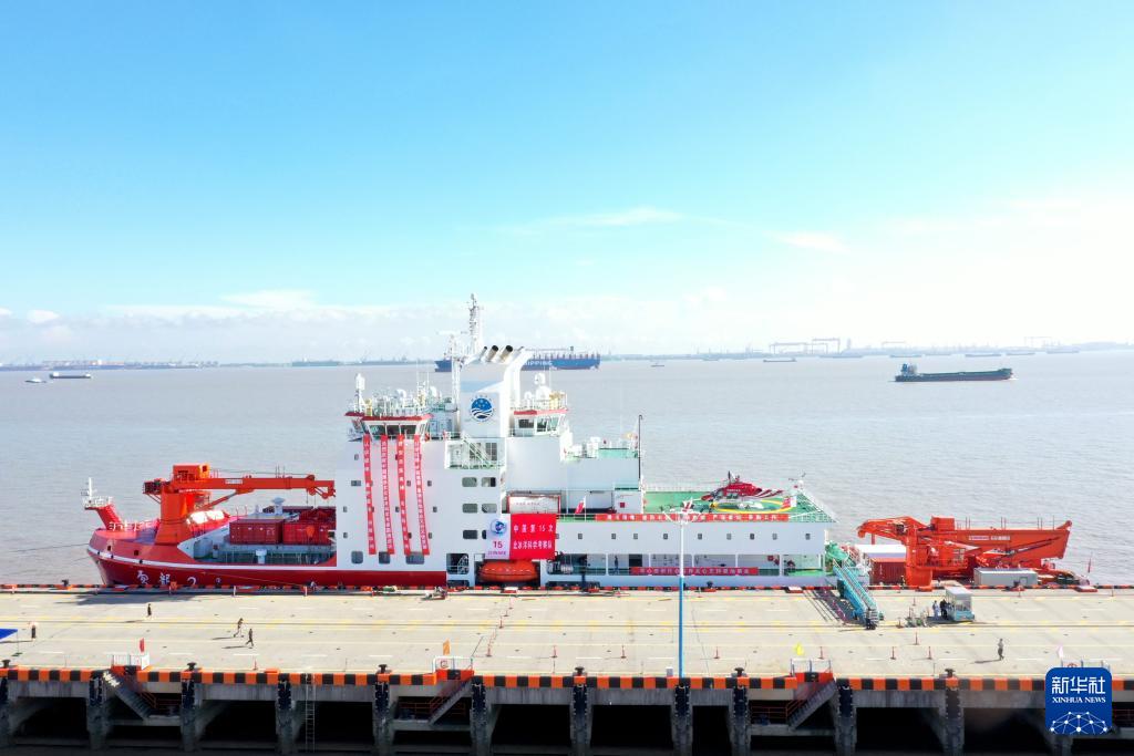 9月26日拍攝的停靠在上海國內基地碼頭的“雪龍2”號(無人機照片)。