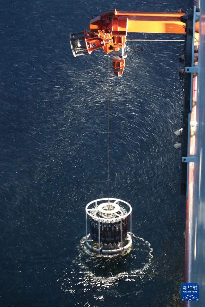 9月8日,“雪龍2”號回收CTD(溫鹽深剖面儀)。