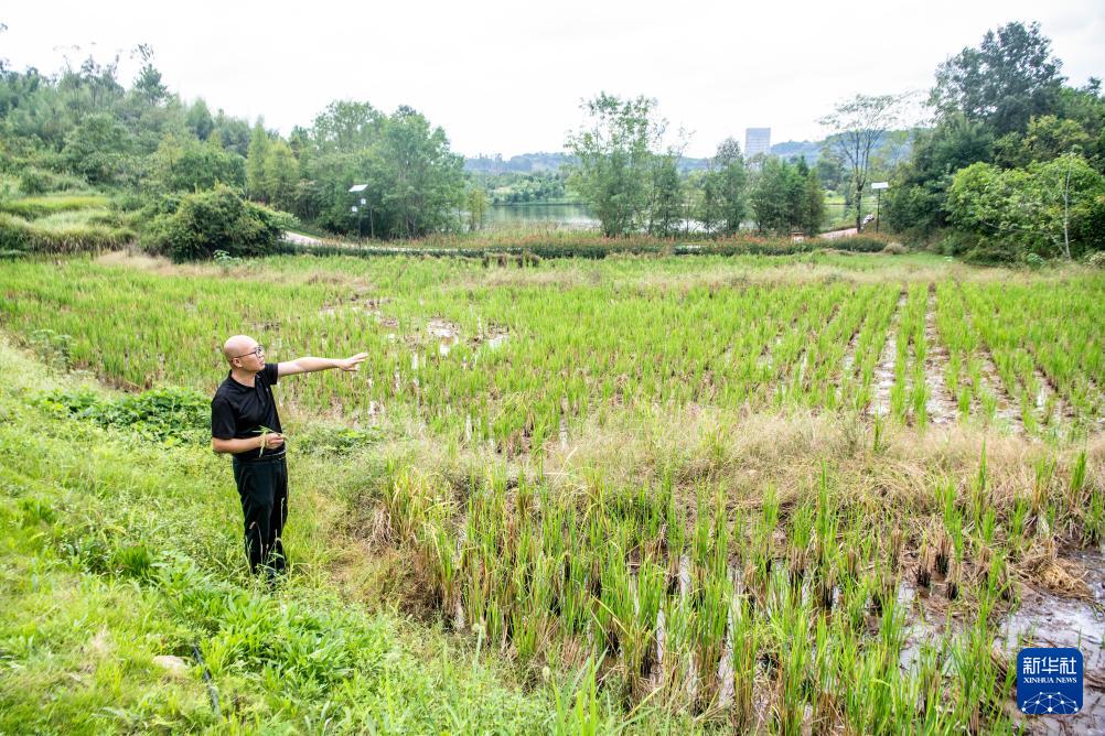 9月26日,重慶市梁平區濕地保護中心工作人員余先懷在雙桂湖國家濕地公園內查看稻田情況。公園內耕種了450畝環湖水稻田,這是冬候鳥的食物來源之一。