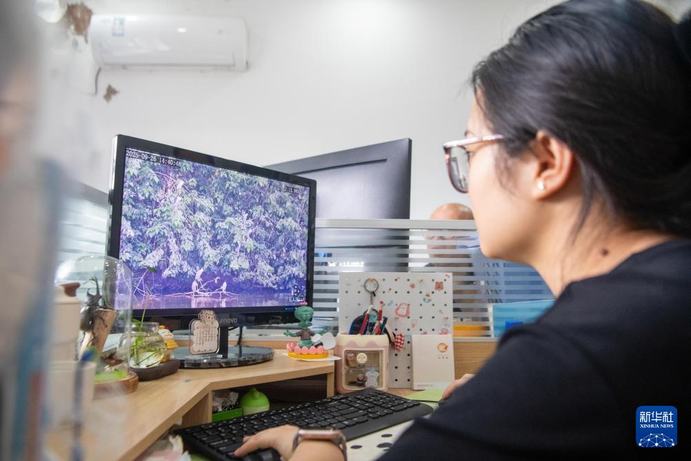 9月26日,重慶市梁平區濕地保護中心工作人員呂妮洪在保護中心內對采集數據進行整理。