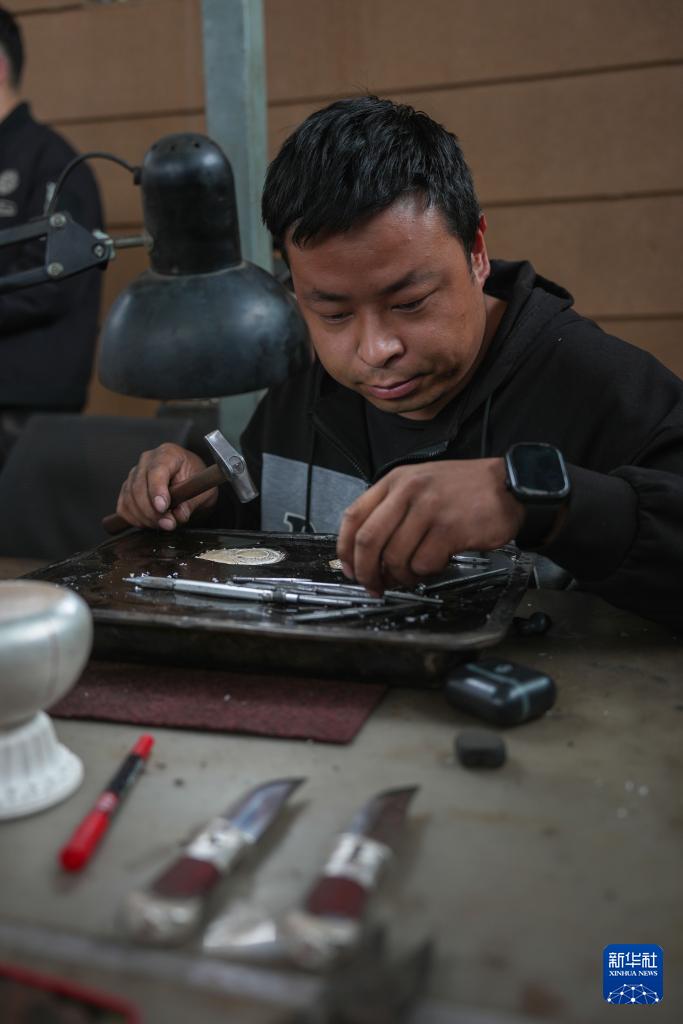 2021年,以東西部協作為契機,江蘇省南京市棲霞區對口支援湟中區,謀劃以銀銅器加工為主的鄉村振興產業,打造魯沙爾鎮陽坡村民族手工藝加工基地。基地采取"股份合作社+基地+農戶"經營模式,全村400多戶村民中,近40%的村民靠這門手藝增收致富。