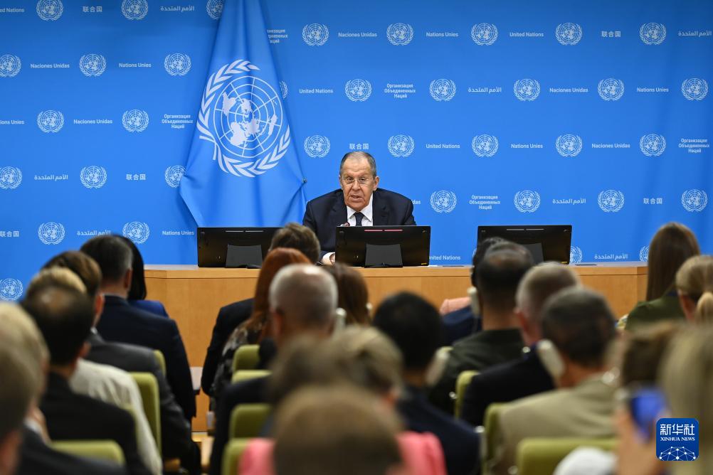 9月27日,在位于紐約的聯合國總部,俄羅斯外交部長拉夫羅夫出席聯大一般性辯論后舉行的記者會。