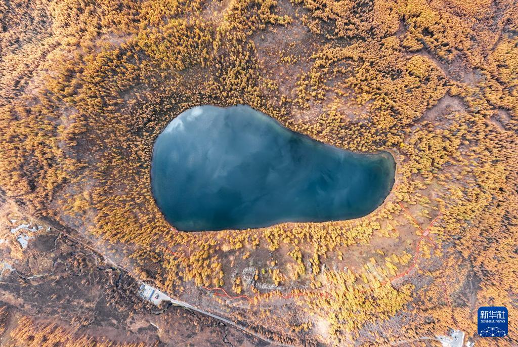 9月29日拍攝的內(nèi)蒙古阿爾山國家森林公園駝峰嶺天池景色(無人機照片)。