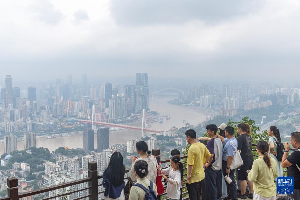 10月2日,游客在重慶市南岸區老君洞觀景平臺欣賞城市景觀。