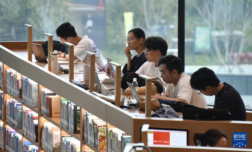 國慶假期,市民來到北京城市圖書館讀書學習,在書香和靜謐中度過假期。
