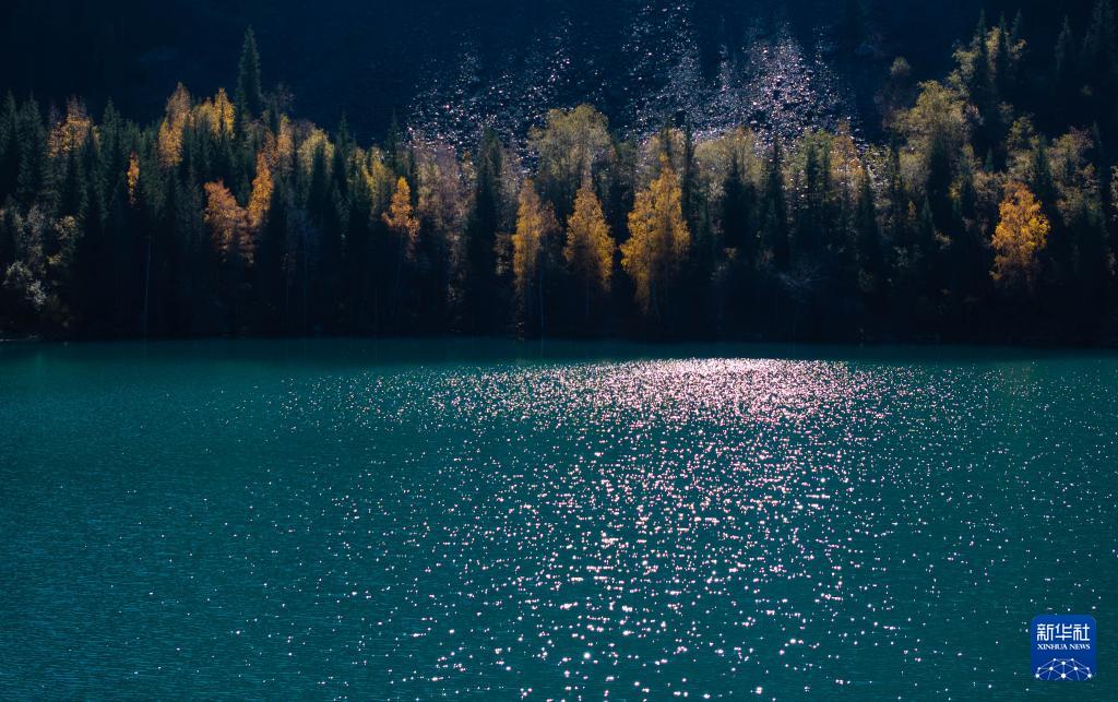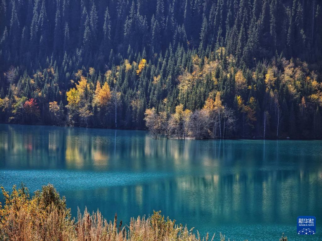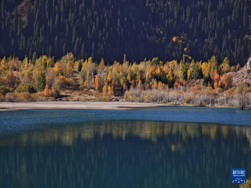 這是10月4日在哈薩克斯坦阿拉木圖州拍攝的伊塞克湖秋日風光(手機照片)。