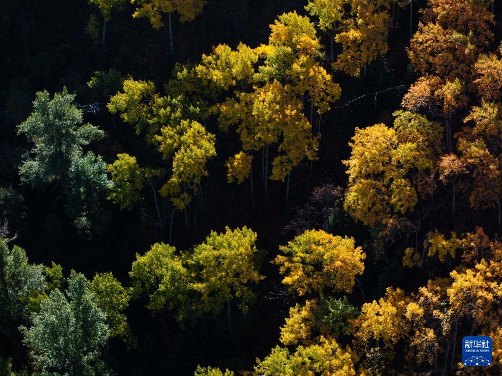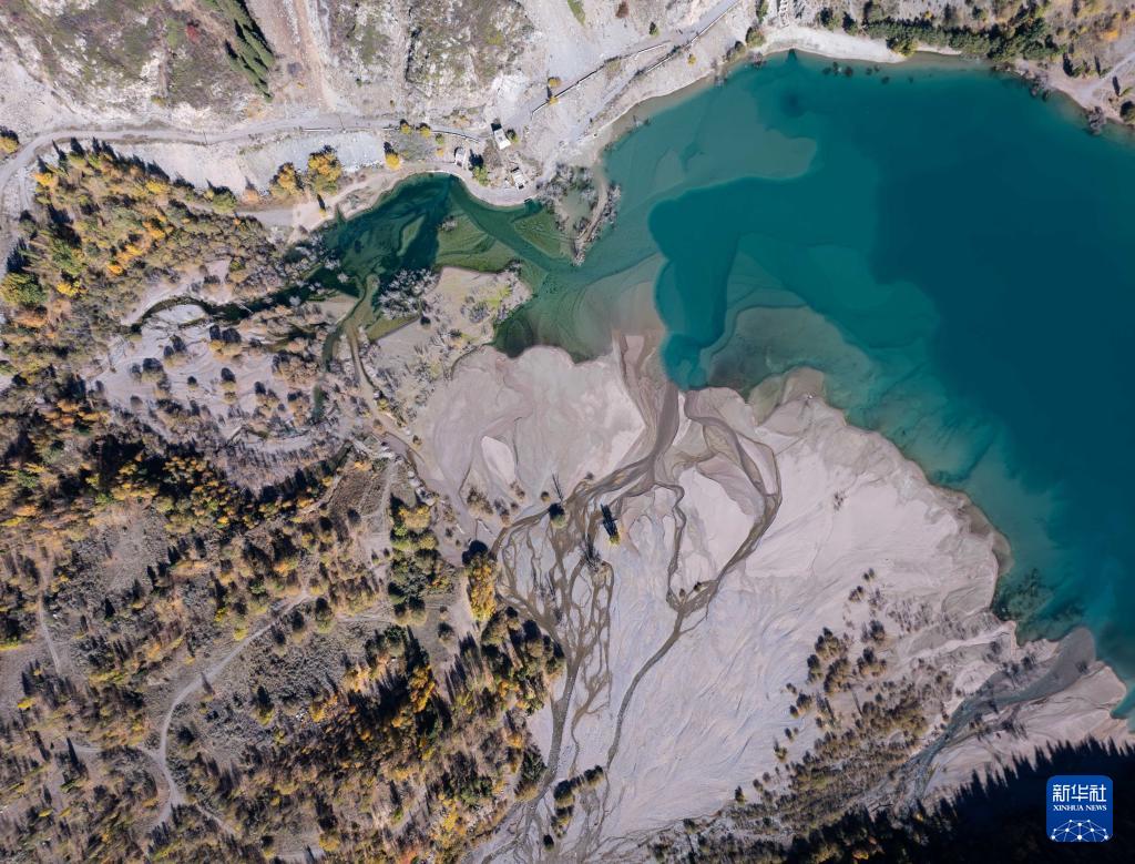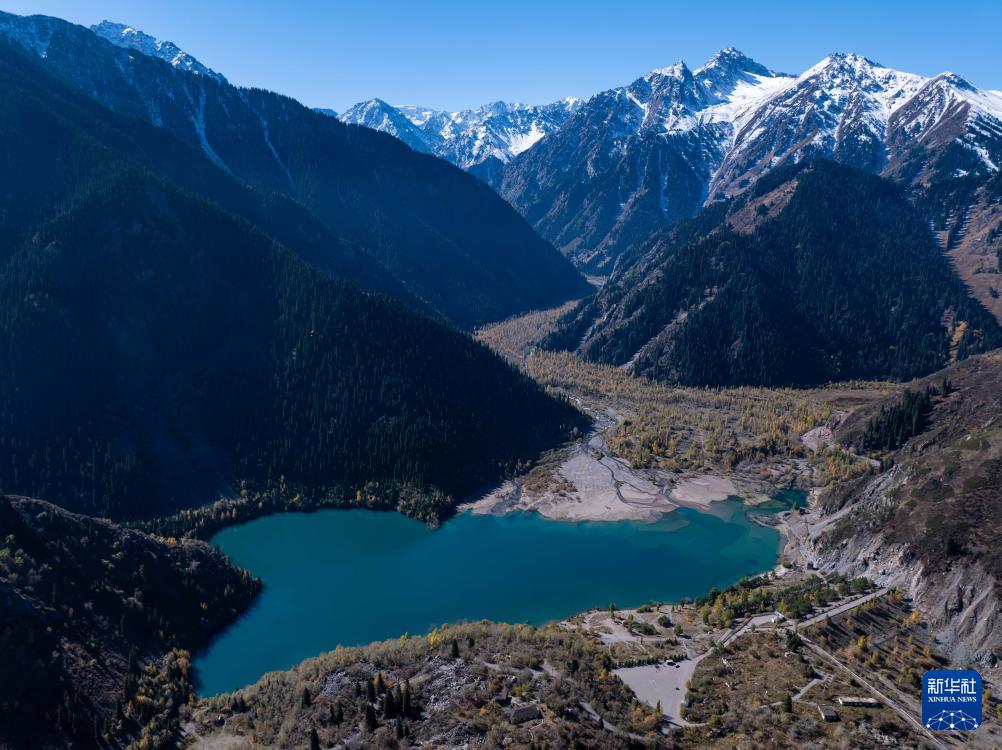 這是10月4日在哈薩克斯坦阿拉木圖州拍攝的伊塞克峽谷秋日風光(無人機照片)。