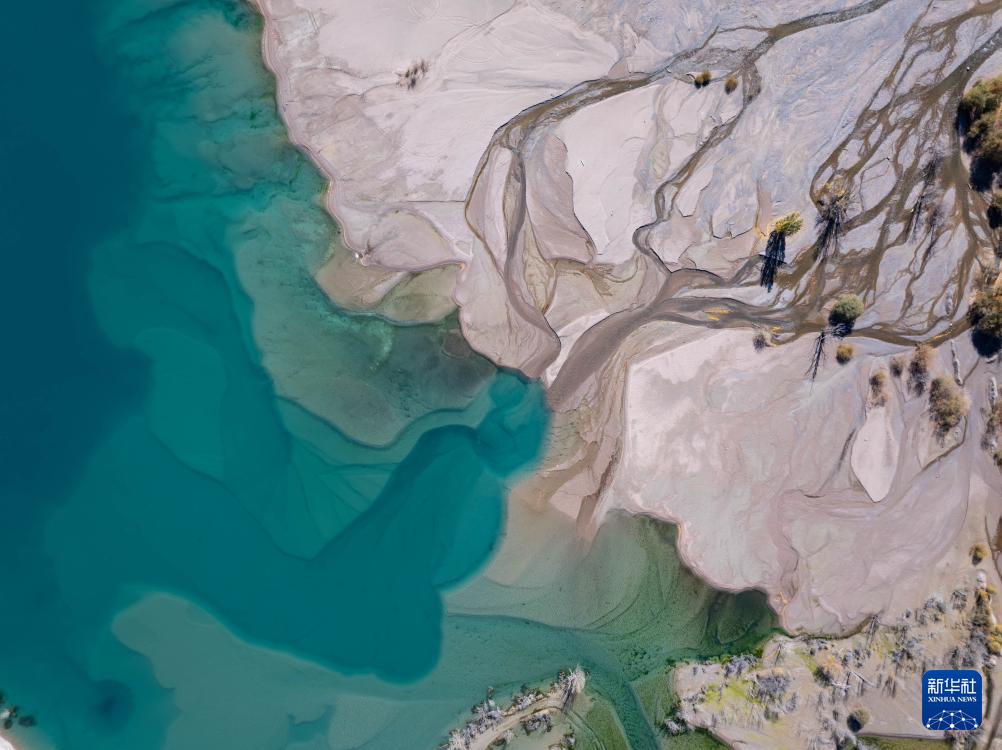 這是10月4日在哈薩克斯坦阿拉木圖州拍攝的伊塞克湖秋日風光(無人機照片)。