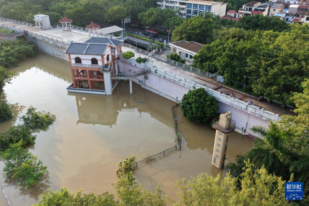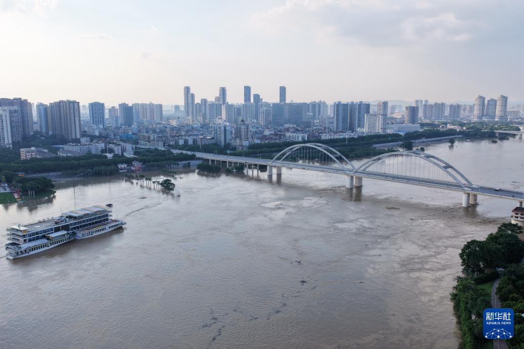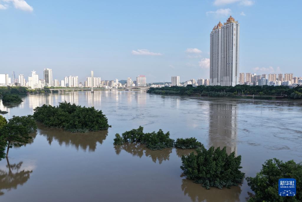 10月8日,邕江南寧市區河段水位不斷上漲(無人機照片)。
